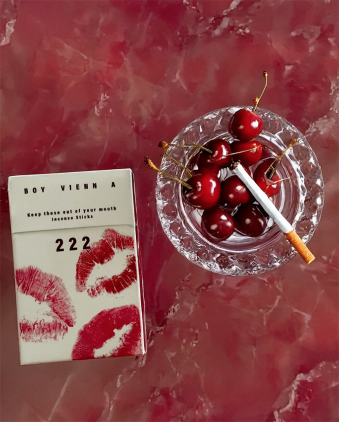 Boîte de 18 bâtonnets d’encens en forme de cigarette. Mélange de sauge, de fruits et de vanille. À allumer côté non-filtre, à tenir par le filtre ou à laisser se consumer dans un cendrier.