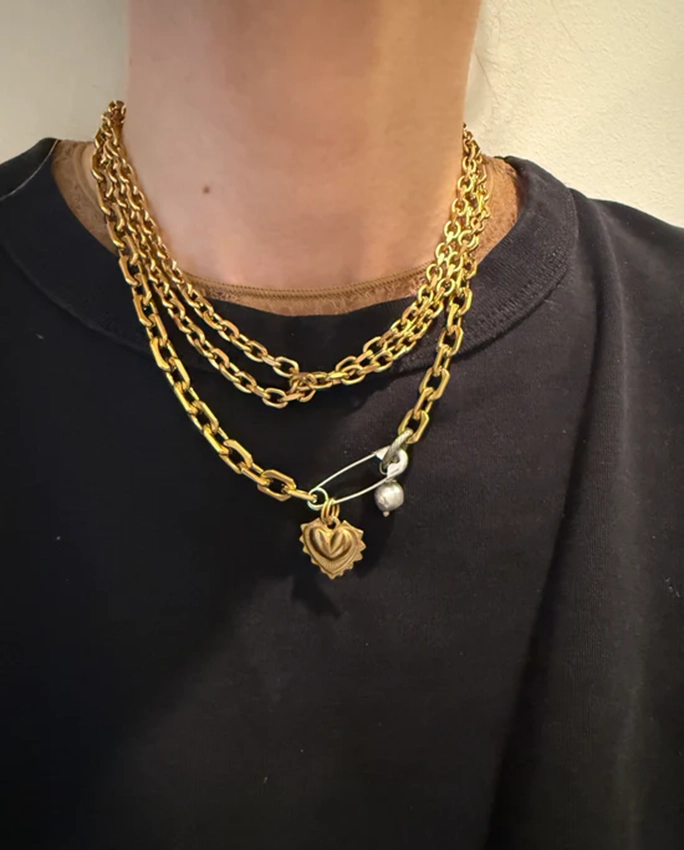 La chaîne et le pendentif sont en acier inoxydable doré.