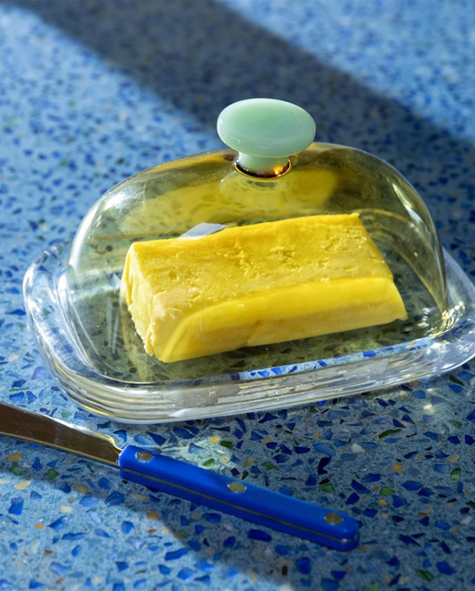 Disponible chez Caillou, concept store à Genève, ce beurrier design apporte une touche colorée et joyeuse à votre quotidien tout en restant pratique et durable.