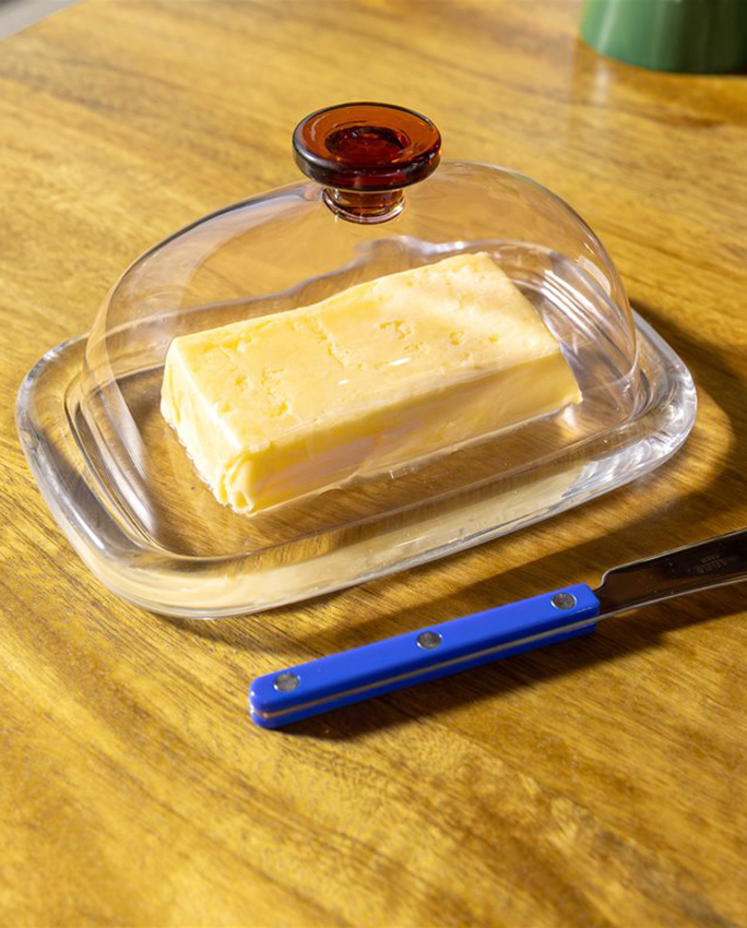 Le beurrier design Cantine en verre borosilicate est l’accessoire parfait pour votre table ou pour offrir comme cadeau original. Sobre, solide et intemporel, il allie fonctionnalité et esthétique. Sa base épaisse garantit une parfaite stabilité, tandis que le couvercle en verre conserve le beurre frais plus longtemps. Grâce à son style multicolore, il s’intègre naturellement dans la collection Cantine et apporte ce petit air bistrot que l’on adore.