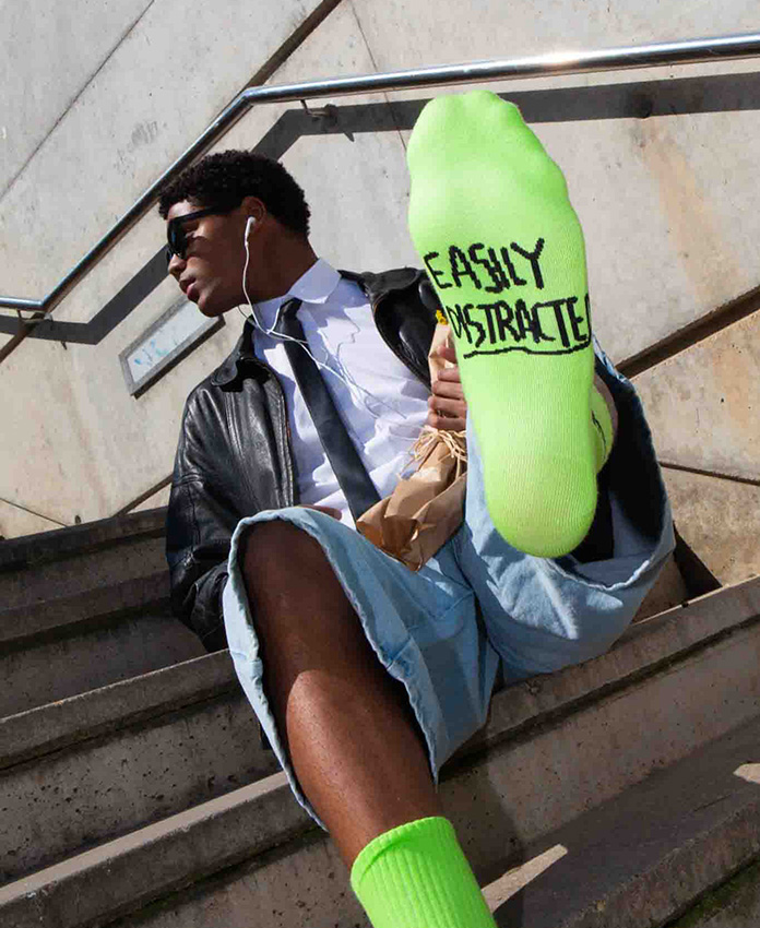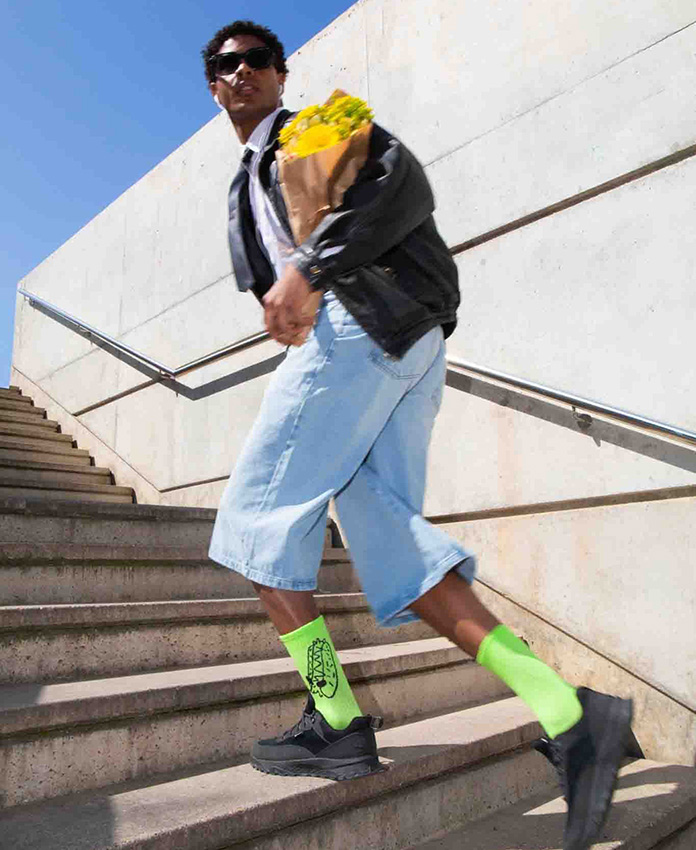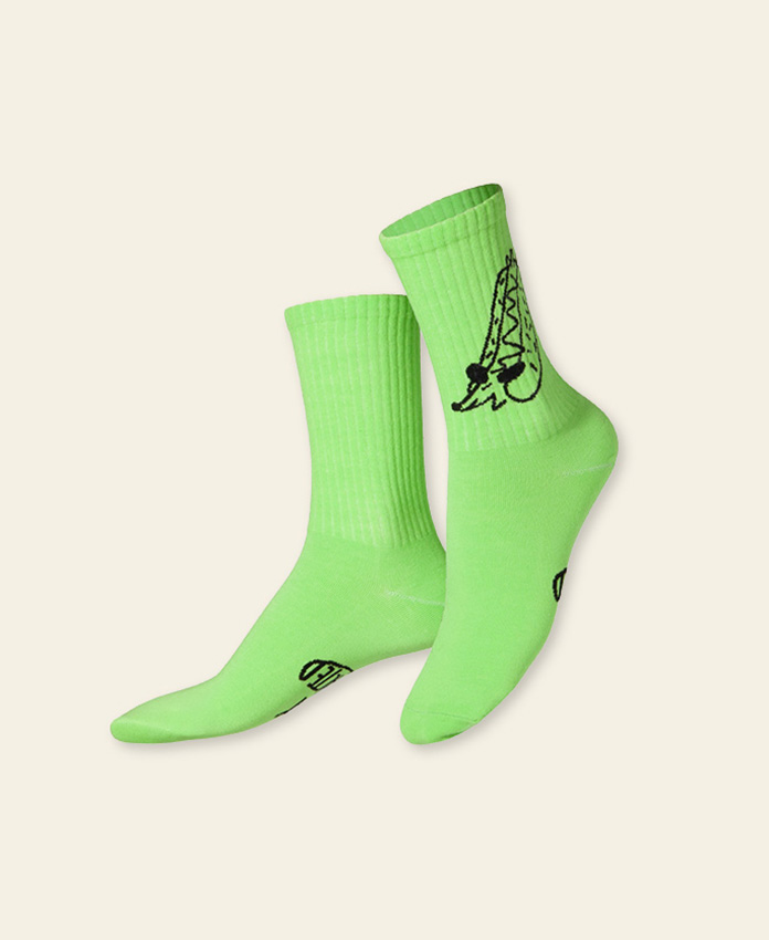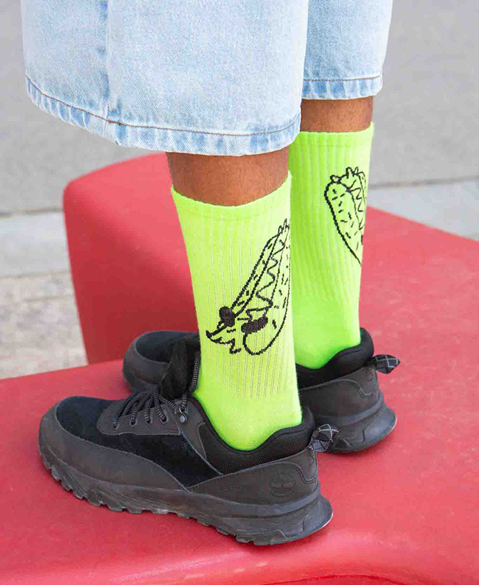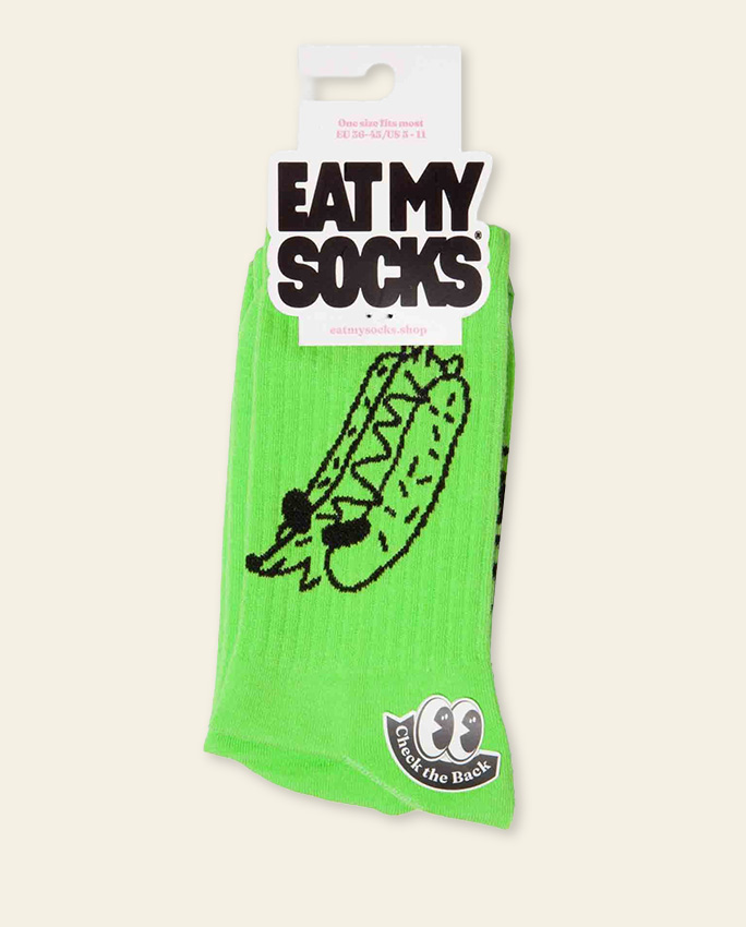 C’est l’accessoire ultime pour tous ceux qui commencent dix projets à la fois et finissent par trier leurs épices par couleur. Ces chaussettes affichent un hot dog vert qui comprend parfaitement le chaos créatif de ton cerveau en mode shuffle. Le design est aussi piquant qu’une dose de moutarde et apporte une caution punk immédiate à ta tenue de bureau ou de skate. Tu peux enfin assumer ton incapacité à rester en place avec un style qui ne s’excuse jamais d’être un peu dispersé.
