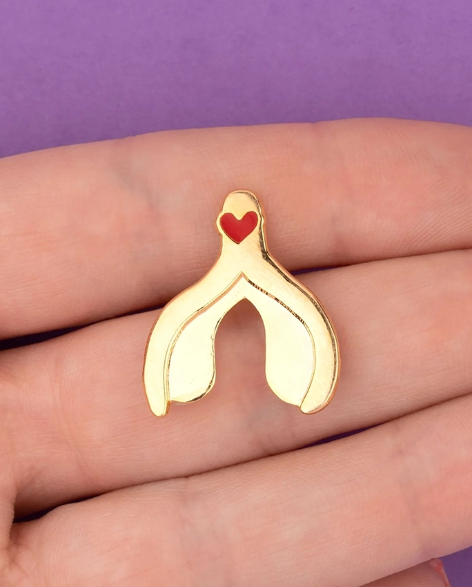 Petit rappel anatomique pour celles et ceux qui en auraient besoin. Le clitoris est bien plus grand qu’il ne le laisse paraître. Ce qu’on voit n’est que la partie émergée de l’iceberg. Coucou Suzette illustre ça sans détour. Le pin’s reprend la forme exacte de l’organe dans sa totalité, branches internes incluses. Instructif, revendicatif, et franchement joli sur un tote bag.