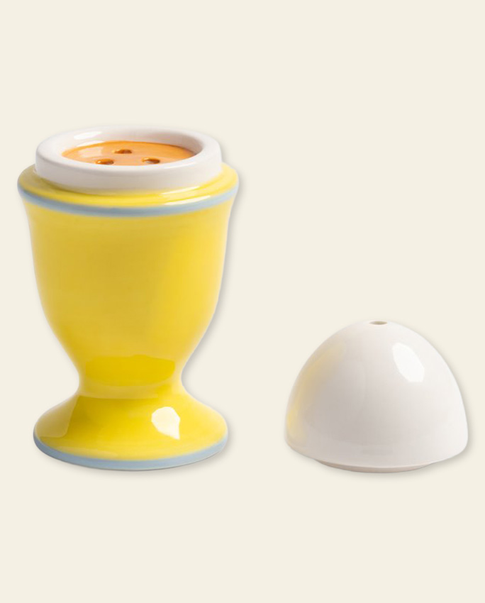 Brouillé, mollet, à la coque – peu importe, cette salière-poivrière est déjà sur la table avant même que tu aies décidé. L’œuf au-dessus, le coquetier en dessous, le sel d’un côté, le poivre de l’autre. Simple, malin, et franchement difficile à ne pas trouver adorable au petit-déjeuner.