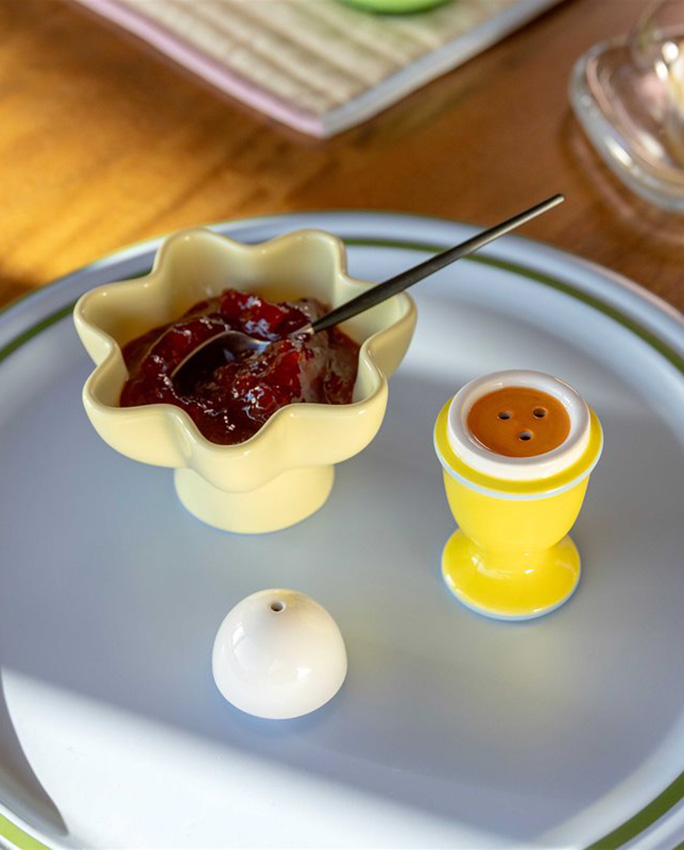 Brouillé, mollet, à la coque – peu importe comment on aime ses œufs. Ce set est déjà sur la table avant qu’on ait décidé. Il a ce petit côté décalé propre à Klevering qui fait qu’on l’achète pour soi et qu’on finit par l’offrir. À associer avec le Cantine – coquetier pour une table du matin parfaitement cohérente.