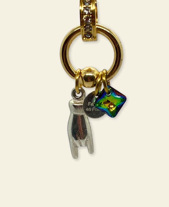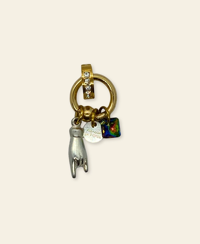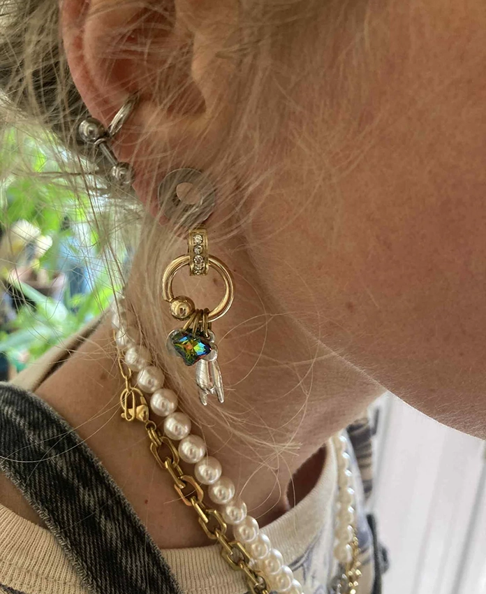 Rock’n’roll baby ! Cette mono boucle mélange créole scintillante, piercing doré, cristal et symbole fort en argent pour un look audacieux et décalé. Engel*3 peut se porter seule pour un effet minimaliste, en paire pour équilibrer le style, ou en set avec une autre mono boucle pour multiplier les contrastes. Une pièce qui ose et qui affirme ton attitude sans compromis.