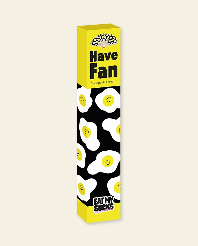 L’éventail Fully Fried de Eat My Socks est un accessoire estival compact et pratique, conçu pour apporter une solution simple et efficace contre la chaleur tout en affirmant un style décalé.