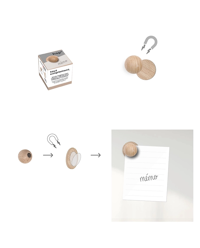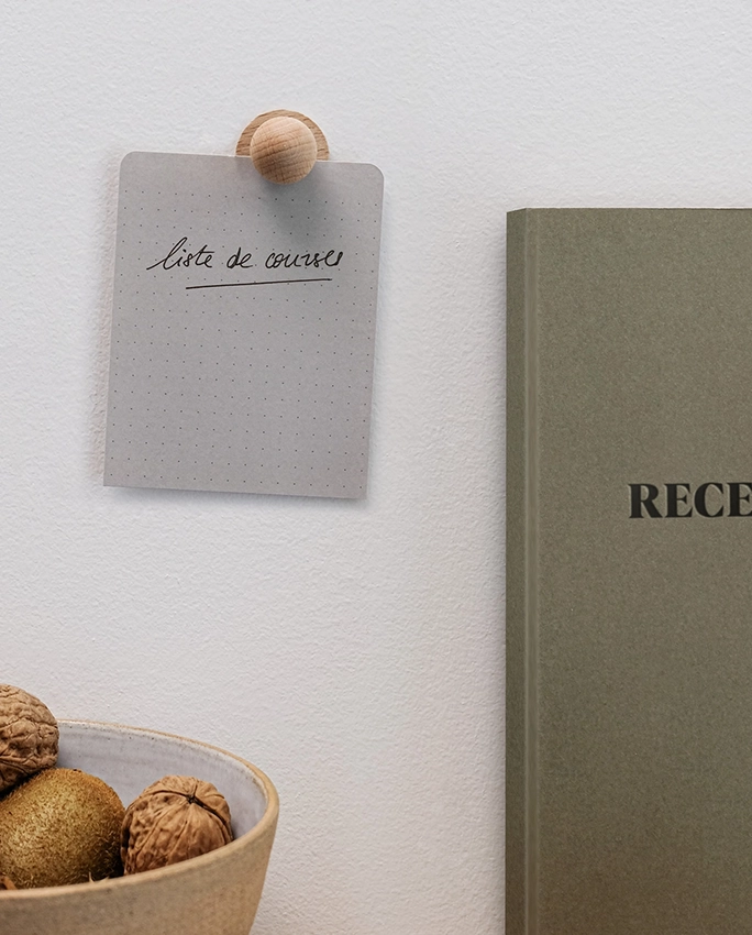 Hop ! sur votre miroir, votre porte, vos éléments de cuisine… Grâce à notre porte-mémo et son support en bois aimanté, vos notes ont enfin trouvé leur allié ! Porte-mémo fabriqué à la main en France et en Suisse par une fondation de travailleurs en situation de handicap.