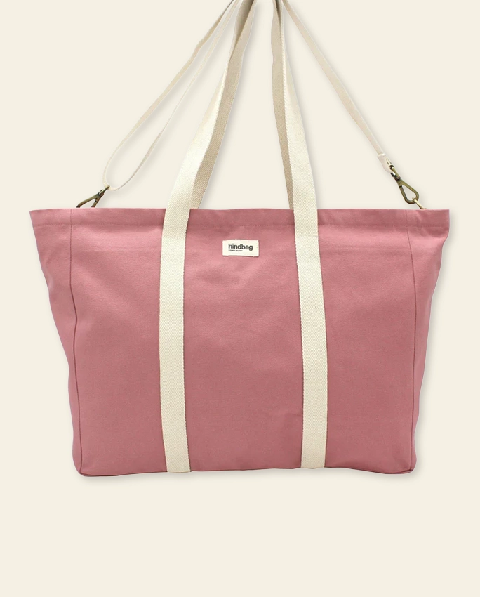 Le cabas qui fait semblant d’être raisonnable. Le Jean rentre partout — en cabine, au marché, au bureau — et sort grandi de chaque situation. Coton bio GOTS, doublure blockprint, bandoulière réglable. En rose blush, terracotta, vert olive ou bleu électrique.