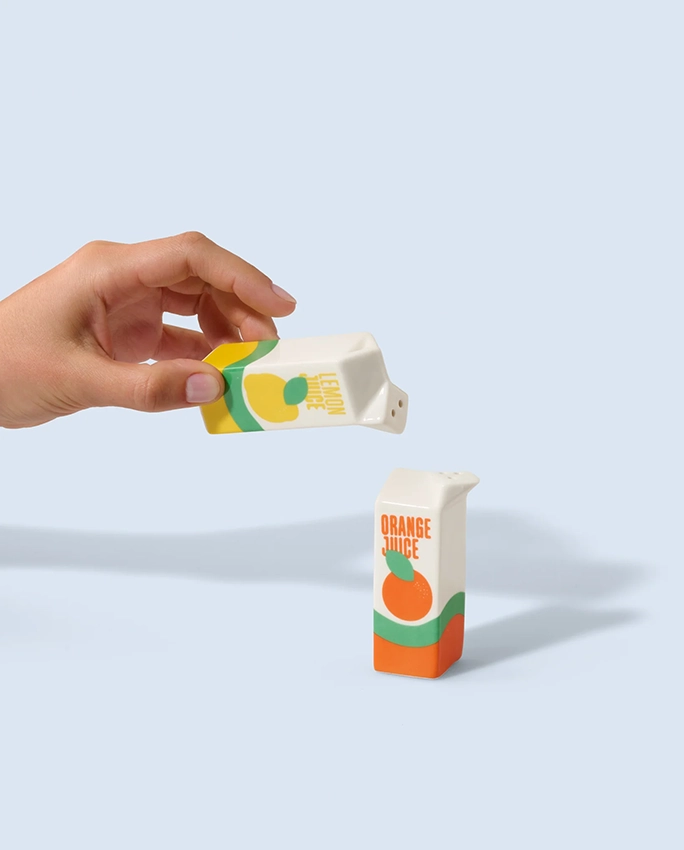 Apportez une touche de fantaisie à vos repas avec cette salière et poivrière Juice de Fluid Market ! Un accessoire qui glisserait presque dans son frigo, parfait pour les amateurs d’objets déco innovants.