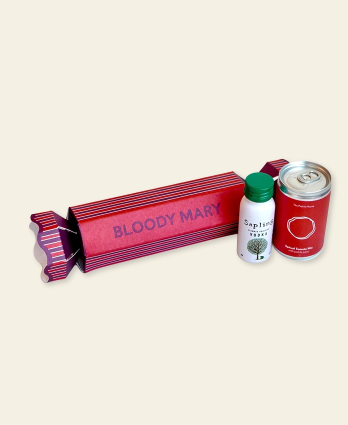 – Ingrédients principaux : jus de tomate concentré 60 %, vodka 17,5 %, jus de cornichon 20 %, sauce Worcester vegan, raifort, poivre, piment de Cayenne, sel