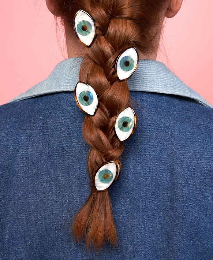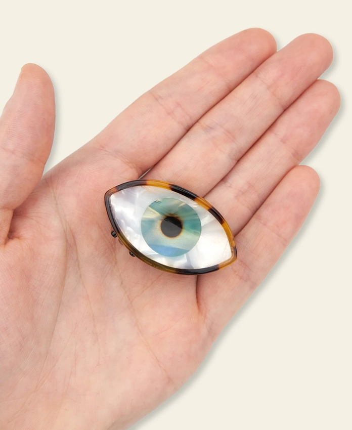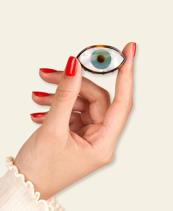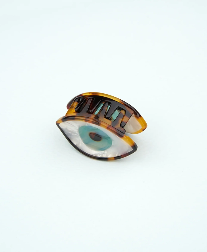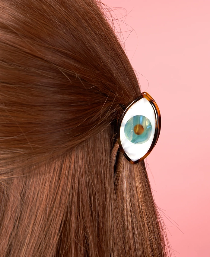 Une mini pince à cheveux Œil Bleu au design iconique