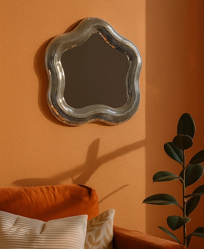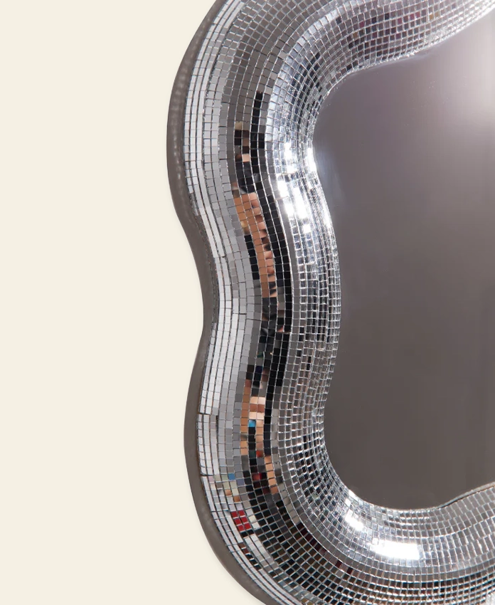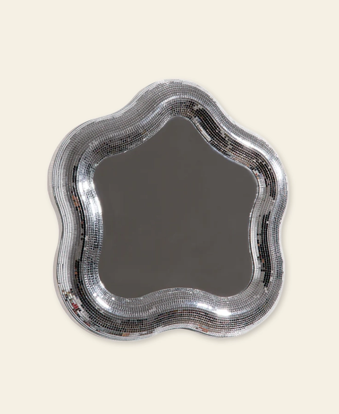 Faites rayonner vos murs avec ce miroir en forme de fleur, façon boule à facettes ! Un mix parfait entre vibes seventies et éclat funky. Il capte la lumière, l’ambiance et tous les regards. À accrocher, admirer et danser devant.