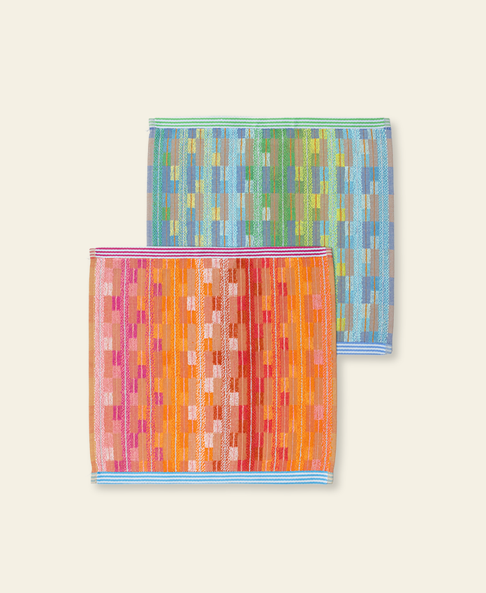 Le multi cloth en coton recyclé Foekje Fleur est un carré multifonction de 30 x 30 cm en coton issu de surplus industriels, 380 gr/m². Vendu en duo, motif Basket #110. Chaque paire présente des combinaisons de couleurs uniques et inattendues — les couleurs sont aléatoires, sans choix possible.