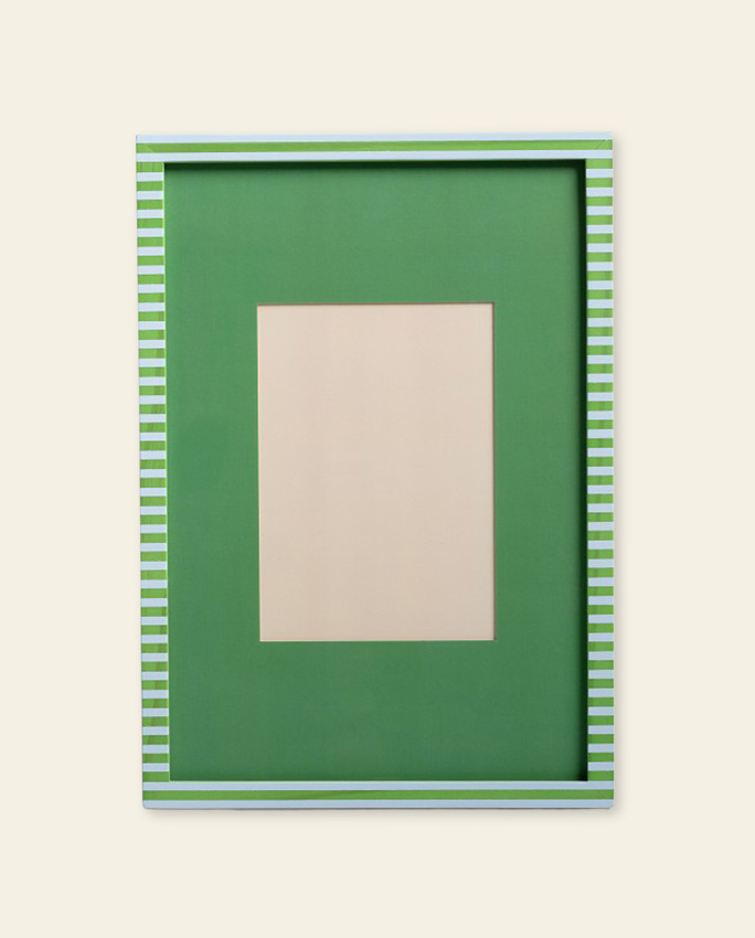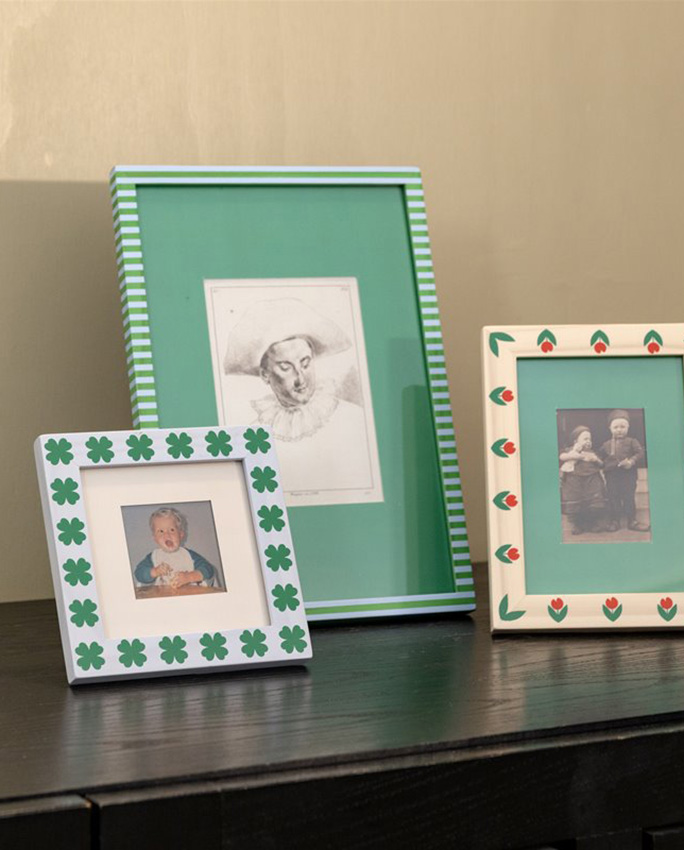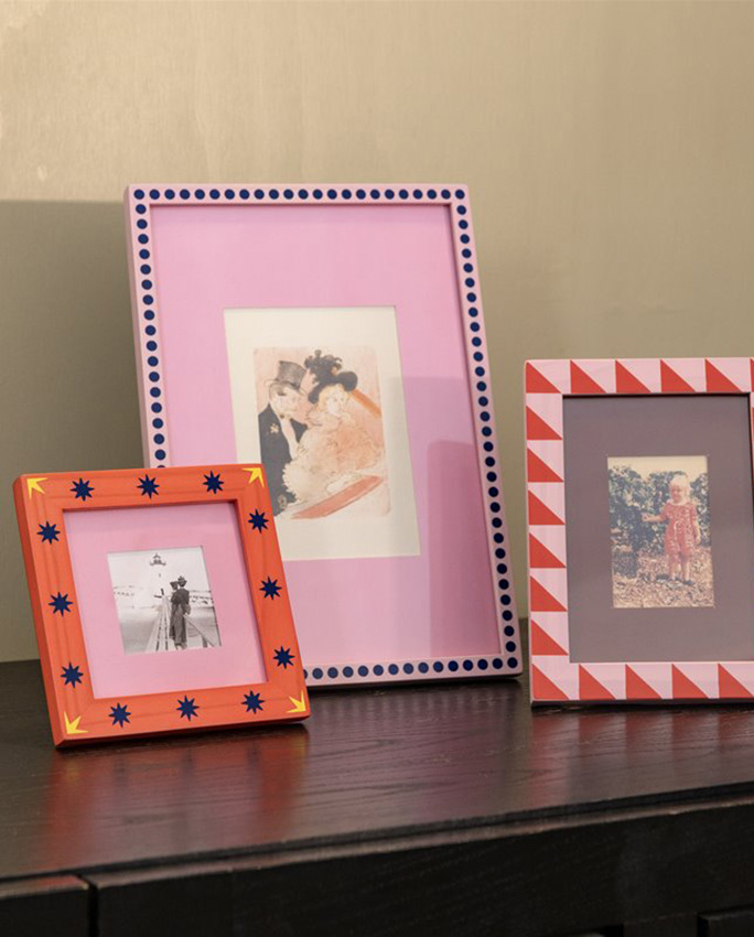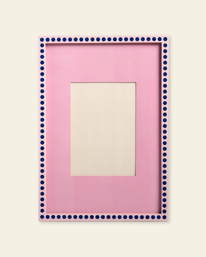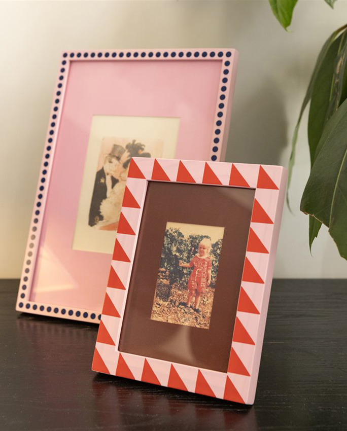 Le cadre se pose ou s’accroche au mur grâce au crochet dentelé inclus. Il est livré avec un passe-partout – donc tout est prévu pour qu’on n’ait plus qu’à choisir la photo. Disponible en deux motifs : stripe ou dots. C’est pourquoi il s’adapte facilement à des intérieurs très différents.