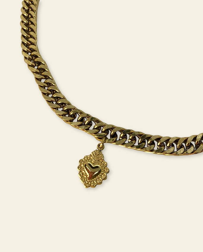 La chaîne et le pendentif sont en acier inoxydable doré.