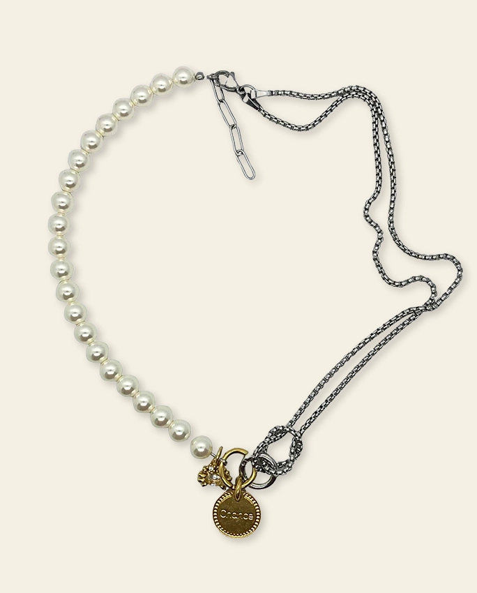 Les perles sont en cristal nacré et la chaine en acier inoxydable argenté.