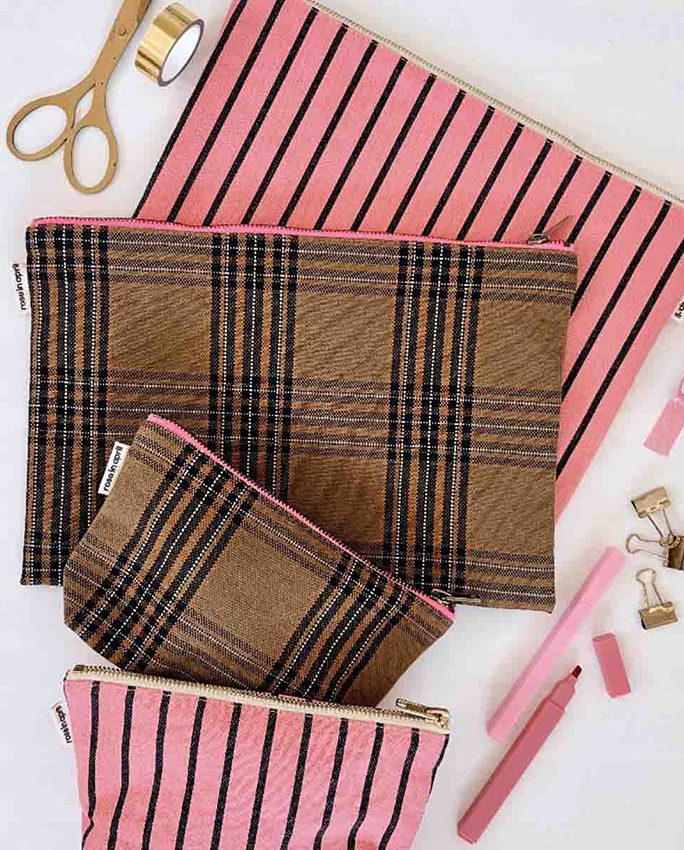 damier ecru / bleu navy, damier strawberry, graou caramel, graou orchidee, graou strawberry, rayure caramel / strawberry, rayure rose fluo, zebrou bambou